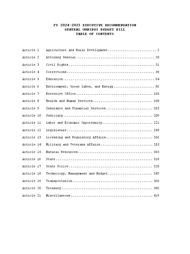 2024 Michigan Budget PDF Appropriations Bill (United States) Fund Accounting