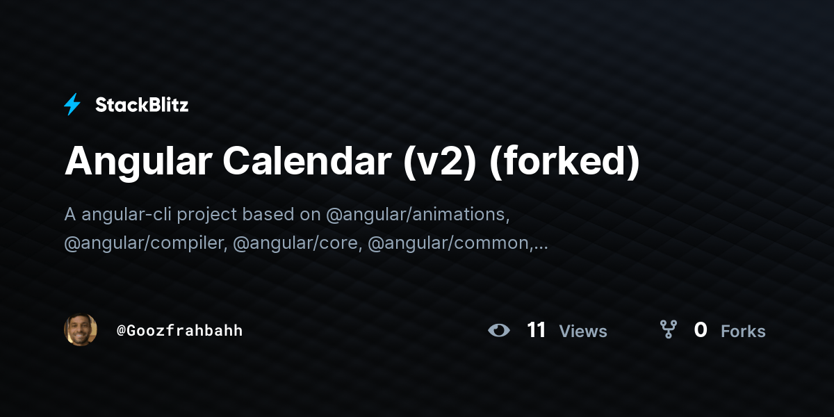 Web Angular Calendar Scheduler Demo Stackblitz Table Of Contents About Compatibility Getting Started Install Include Component Usage.