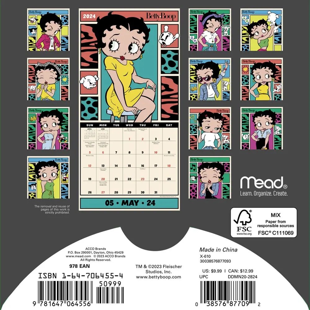 9781647064549 Betty Boop 2024 Wall Calendar ACCO Brands Calendar Club