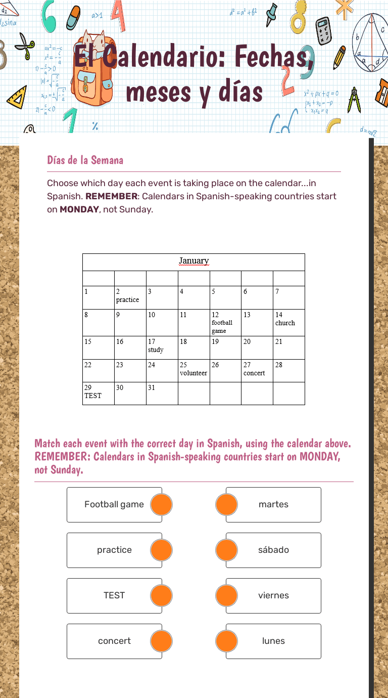 El Calendario Fechas, meses y días Interactive Worksheet by Sarah Vanegas DCHS Wizer.me