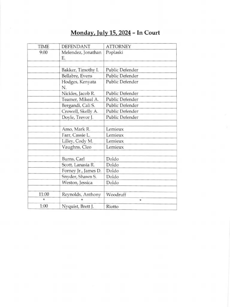 Jefferson County Court Calendar Jan. 24, 2024 PDF