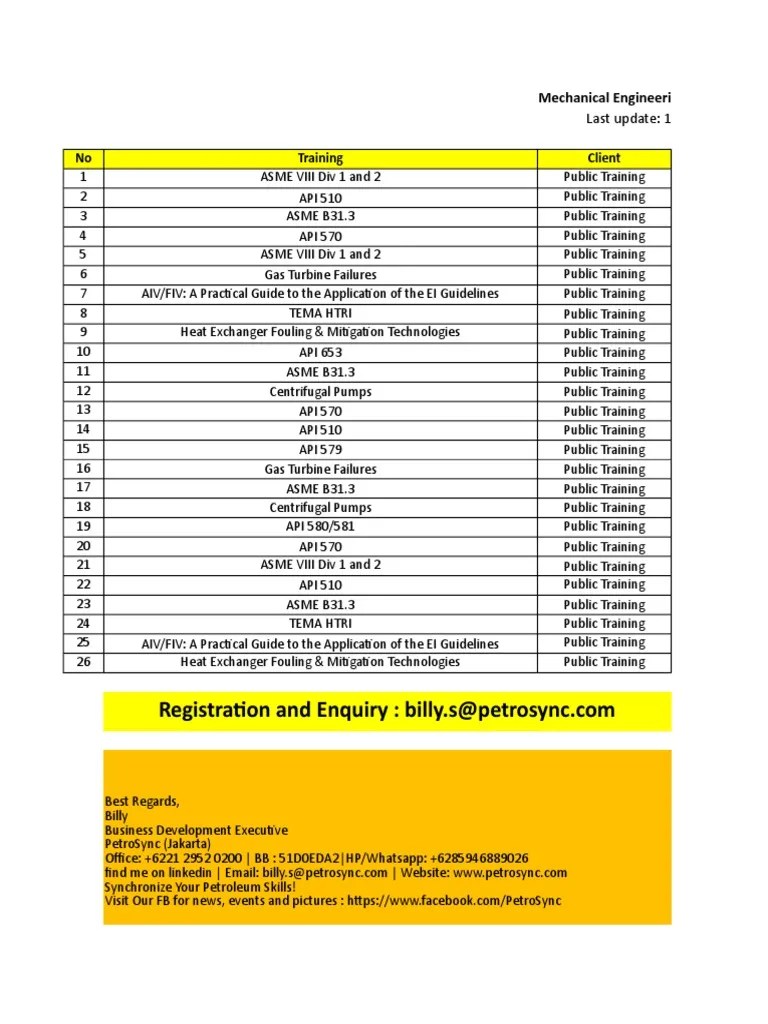 No Training Client Mechanical Engineering Training Calendar 2015 Energy Conversion
