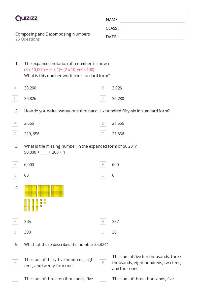 50+ Composing and Numbers worksheets for 4th Grade on Quizizz Free & Printable