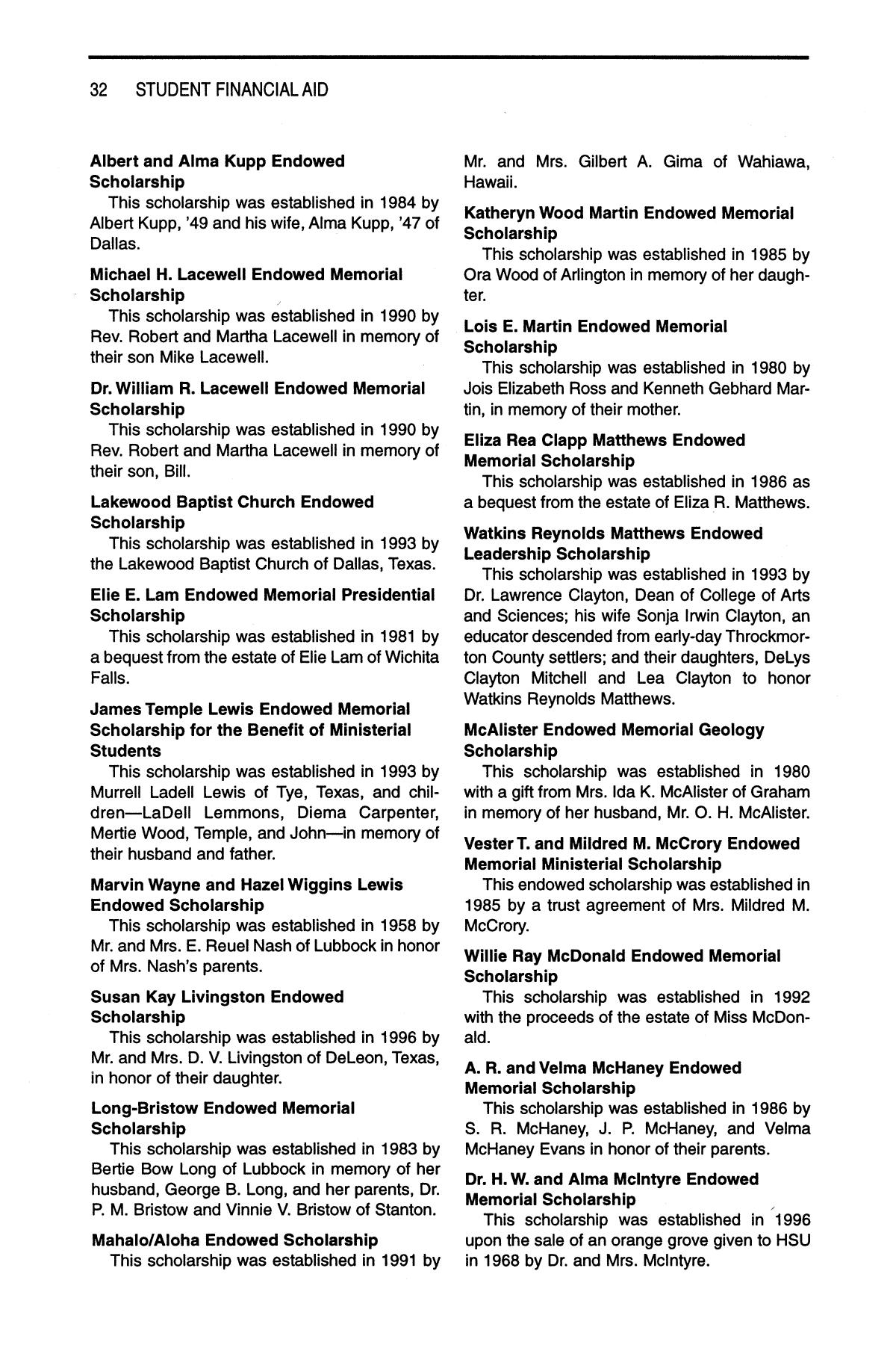 Catalog of HardinSimmons University, 19981999 Undergraduate Bulletin Page 32 The Portal to
