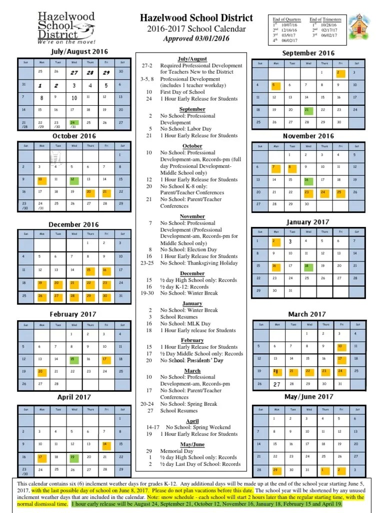 HSD Calendar 20162017 PDF Educational Institutions Schools
