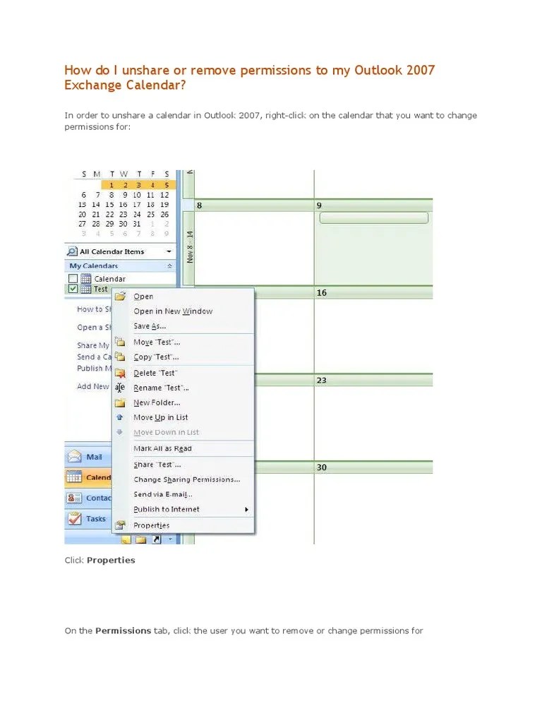 How Do I Unshare or Remove Permissions To My Outlook 2007 Exchange Calendar? PDF