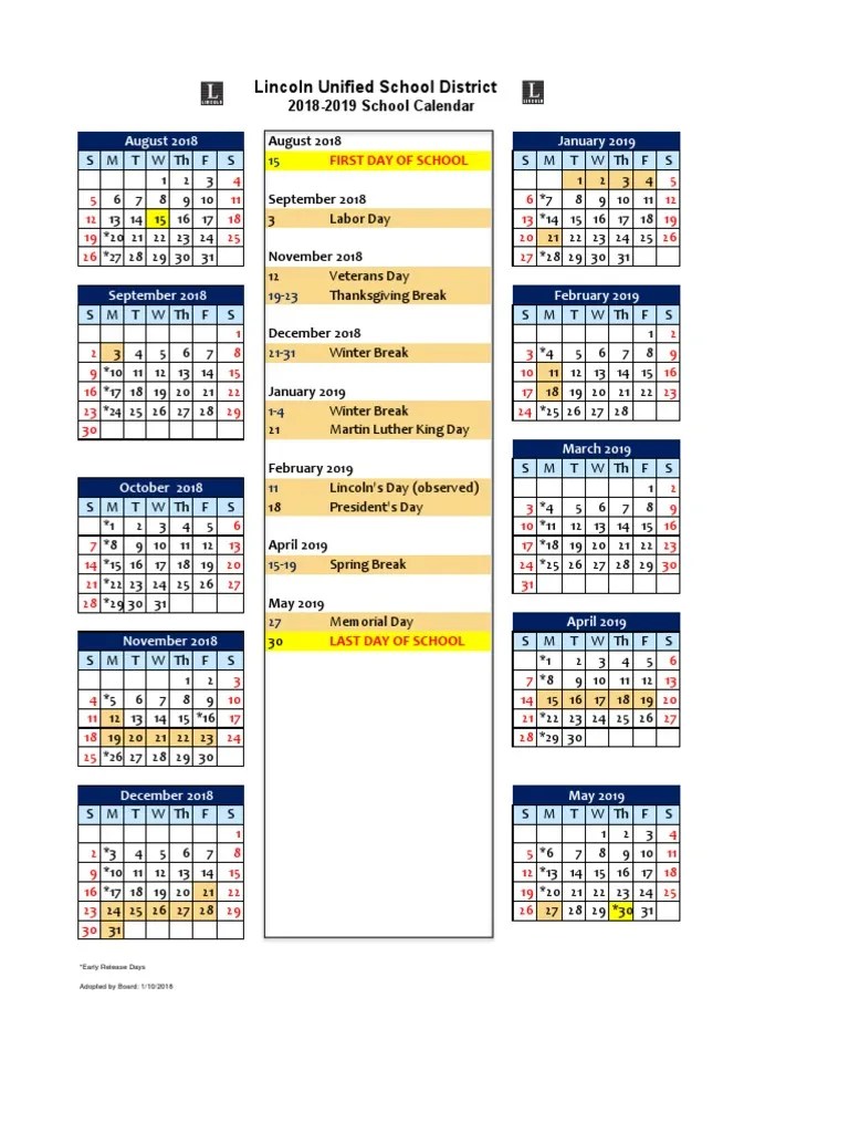 201819 Lusd Student Calendar PDF Public Holiday Observances