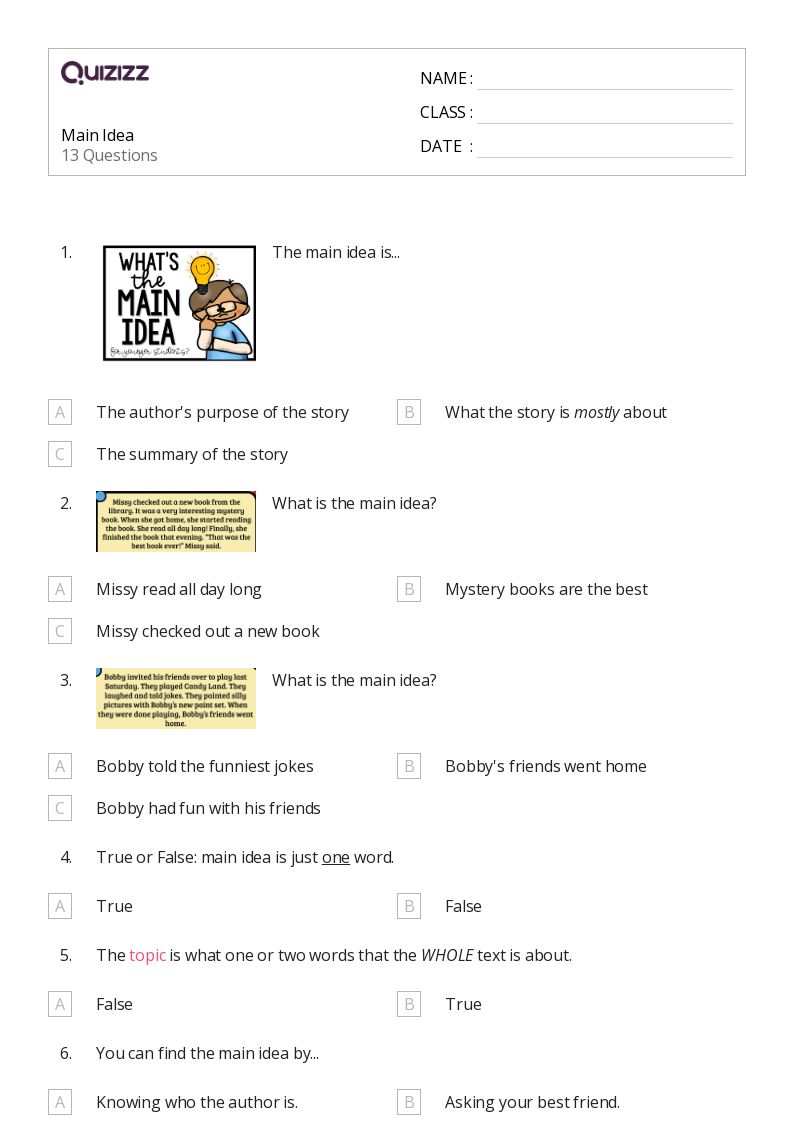 50+ Identifying the Main Idea worksheets for 3rd Grade on Quizizz Free & Printable