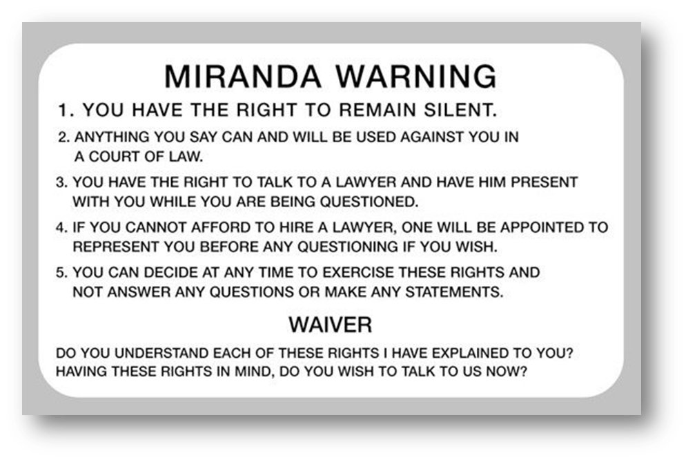 Printable Miranda Warning Card