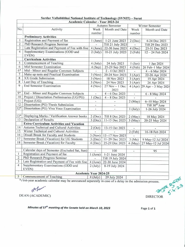 Academic CalendarAll Programmes II To V Yr. & For MCA & M TechI Yr