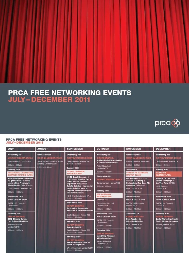 PRCA's FREE Events Calendar July December 2011 PDF London Business