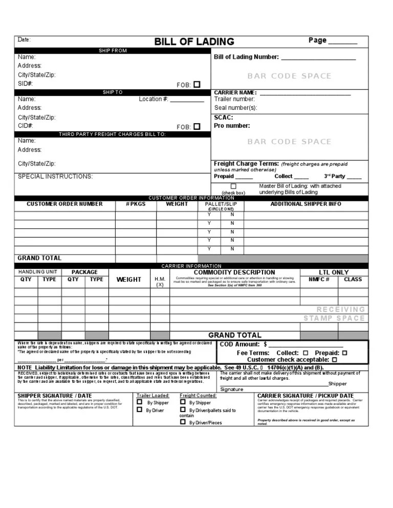 Web Bill Of Lading Template.