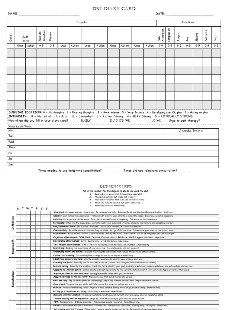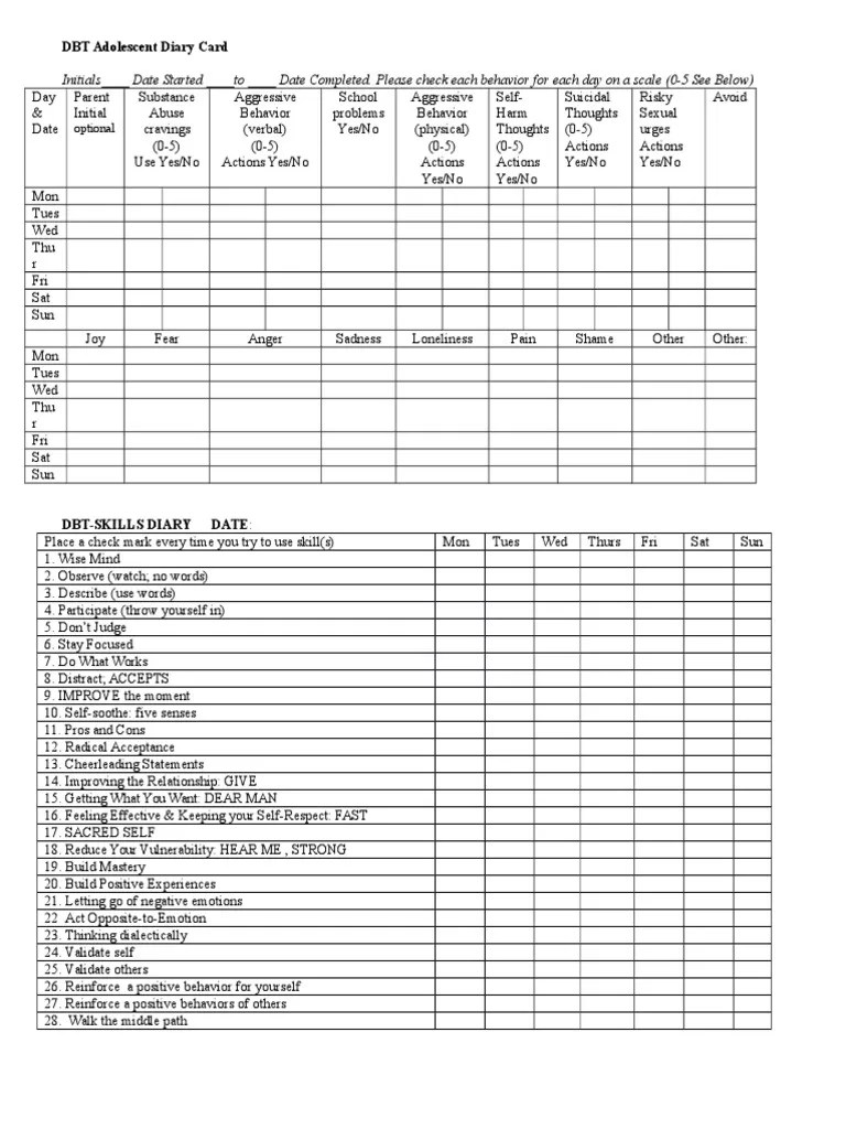 Free Printable DBT Diary Card Dbt diary card, Dialectical behavior therapy