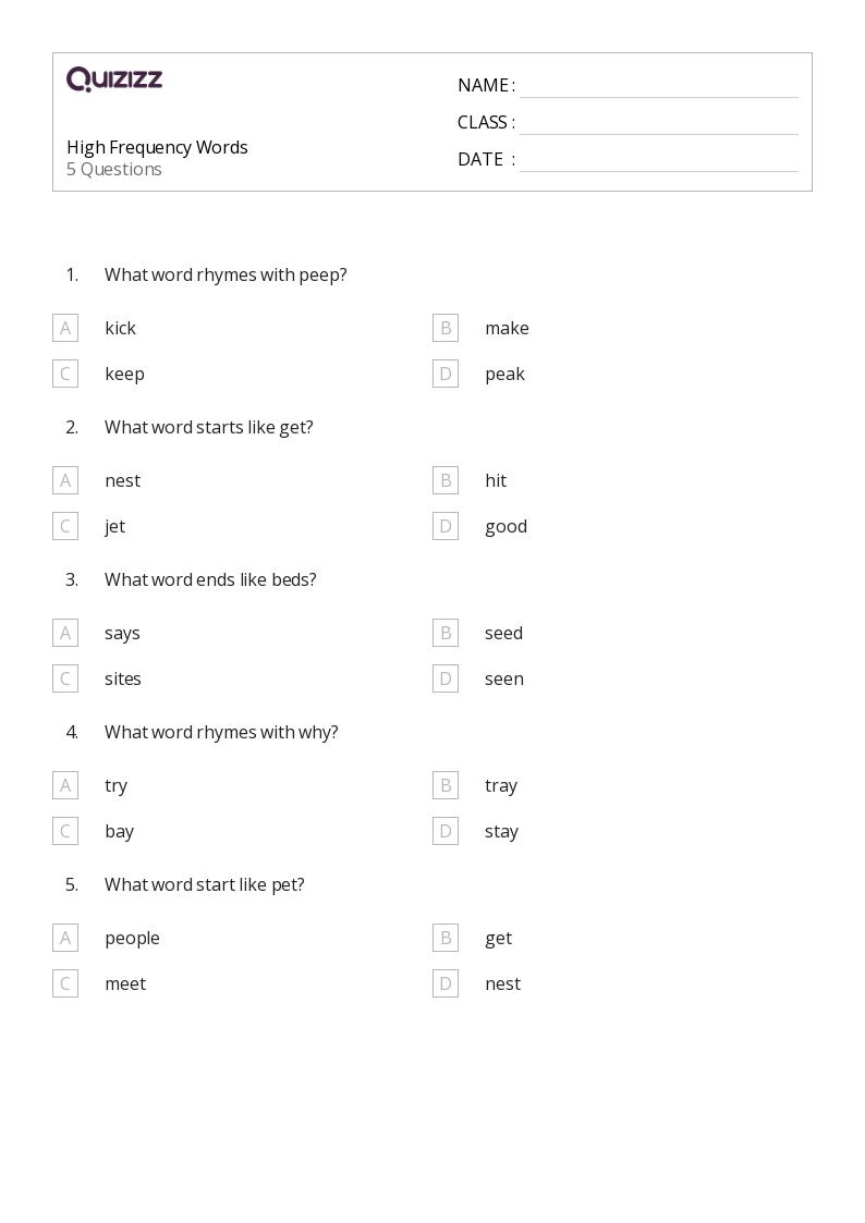50+ High Frequency Words worksheets on Quizizz Free & Printable