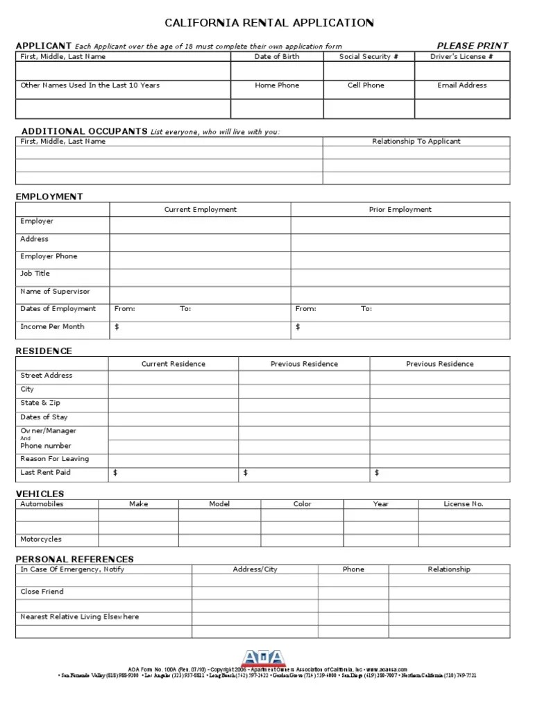 Free Printable Rental Application California PRINTABLE TEMPLATES