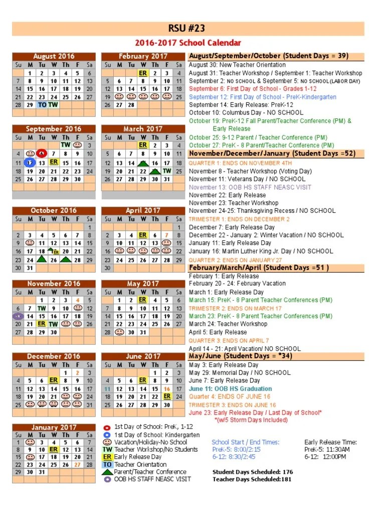 Rsu 23 20162017 Approved Calendar Rsu 23 PDF The United States Academia