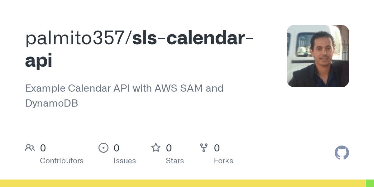GitHub palmito357/slscalendarapi Example Calendar API with AWS SAM and DynamoDB