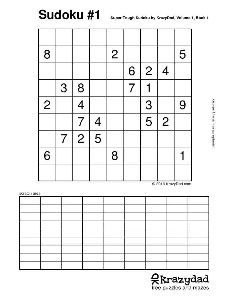 Free Printable Sudoku Puzzles Crazy Krazydad Sudoku Printable Sudoku Printables