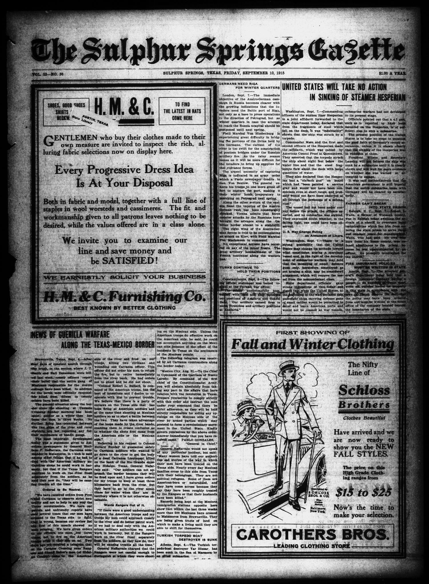 The Sulphur Springs Gazette (Sulphur Springs, Tex.), Vol. 53, No. 36, Ed. 1 Friday, September 10