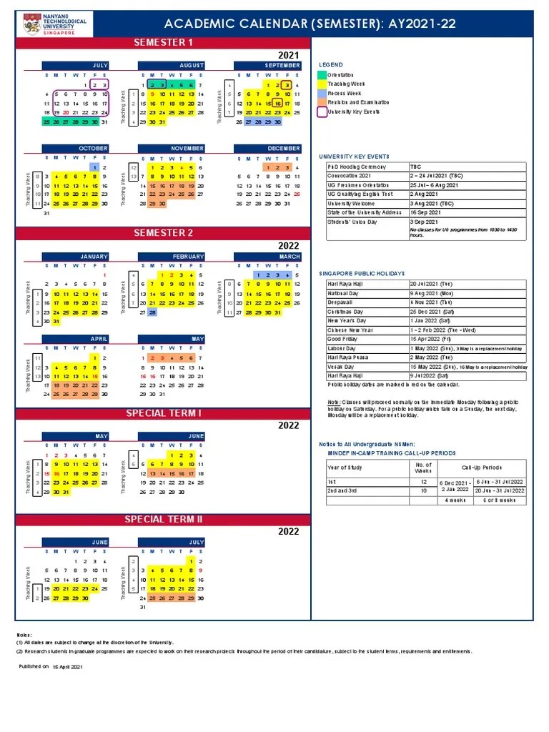 Ntu Academic Calendar Ay2021 22 (Semester) PDF Observances Public Holiday