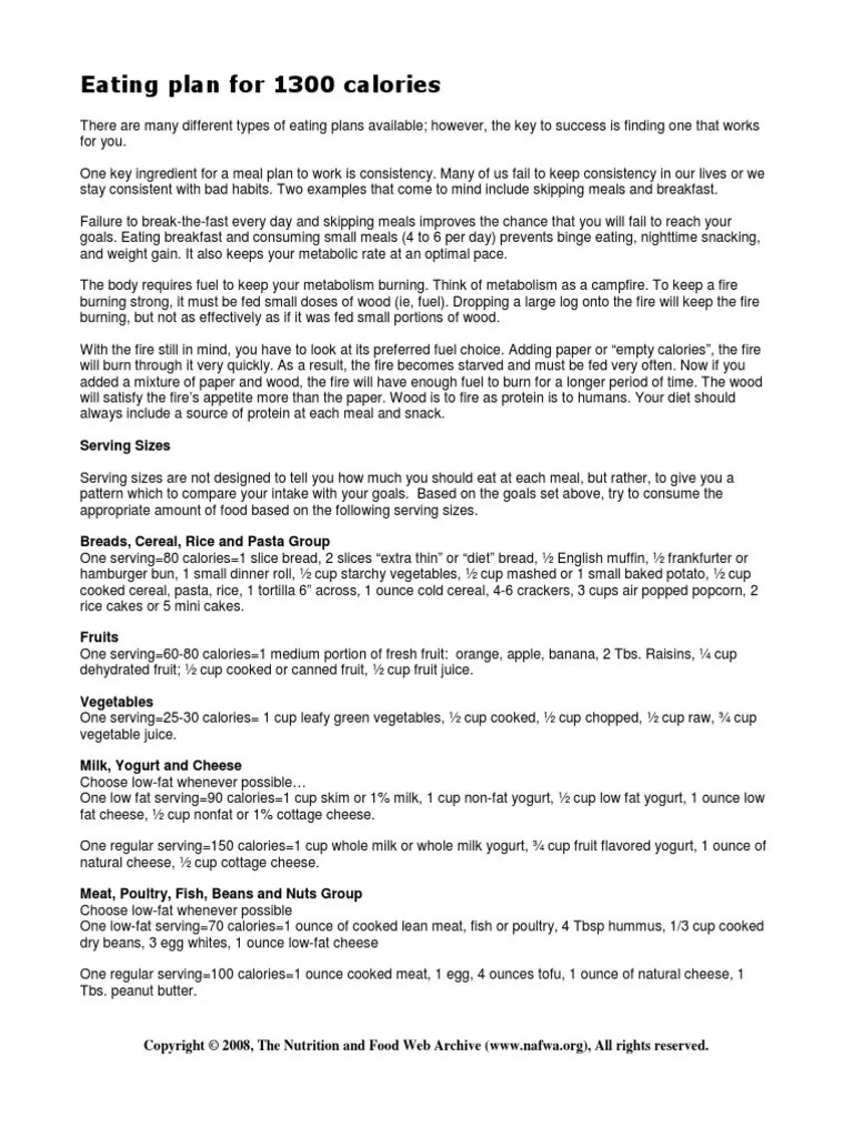 Download a printable version of a 1,300 calorie meal plan for weight loss, with recipes for breakfast, lunch, dinner and snacks. In this article, we will provide a woman printable 1300 calorie meal plan that includes two versions of the recipe based on the best taste. Learn the benefits and drawbacks of a 1,300 calorie diet and how to. 1300.
